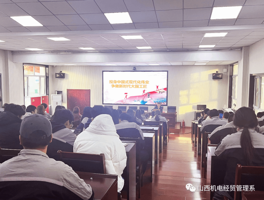 11月16日下午,院党委委员、纪委书记李葆宏以《投身中国式现代化伟业 争做新时代大国工匠》为题,在知行报告厅为经贸管理系师生讲授专题党课,经贸管理系100余名师生参加学习。
