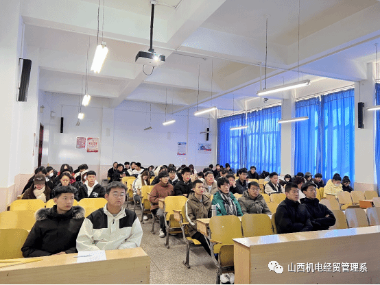 12月1日下午,经贸管理系党总支书记张冲在主教学楼B102,面向营销2371班、电商2309班、广告2305班80余名学生讲授专题党课。