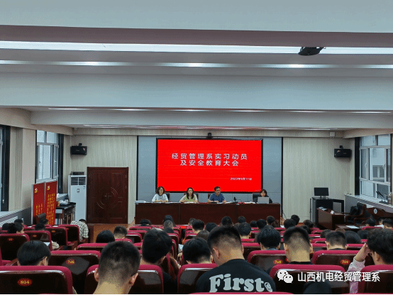 9月11下午,经贸管理系召开实习动员及安全教育大会,经贸管理系党总支书记张冲、副主任(主持工作)范志英、副主任邢淑萍、分团委书记李彤出席会议,全体大三即将实习学生参加会议,会议由邢淑萍主持。