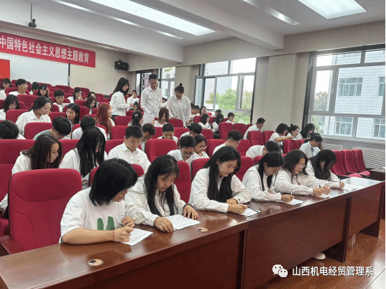 9月13日下午,经贸管理系在学院求实报告厅召开第六届学生代表大会。经贸管理系党总支书记张冲、党总支副书记刘淑林、分团委书记李彤、辅导员张崇、院学生会主席张雨欣、经贸管理系分团委副书记王艾,分团委副书记、学生会主席团成员靳银银,学生会主席团成员陈佳乐出席会议,各班学生代表参加会议,会议由靳银银主持。